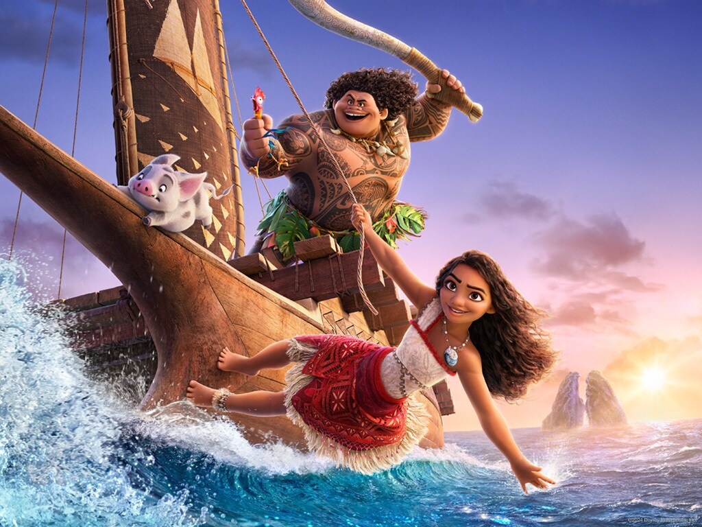 "Моана-2", 2024 г, мультфильм от Диснея. Авторы не стали сильно заморачиваться с придумывнием чего-то оригинального и решили действовать по проверенному шаблону. Очень зря - с сюжетом вышла несрастуха - вводные-то изменились! В первой части мы знакомимся с живущим на острове племенем, которое чтит традиции и строго соблюдает табу, одним из которых является запрет уплывать за рифы. Лишь дочка вождя Моана не готова бездумно подчиняться всем подряд правилам. Узнав, что когда-то племя было путешественниками и мореплавателями, она нарушает запрет и пускается в опасное приключение, цель которого - спасти деревню, ведь Тефити, или кто там, гневается и насылает мор на всё, чем люди на этом острове питаются. После успешной операции, мы же помним, чем закончился первый фильм, Моана прощена, правила изменены, и племя возвращается к своей исконной деятельности - покорение морей и поиск новых земель. Но во второй части мы почему-то снова видим ту же общину, на том же месте, и никто никуда не пл