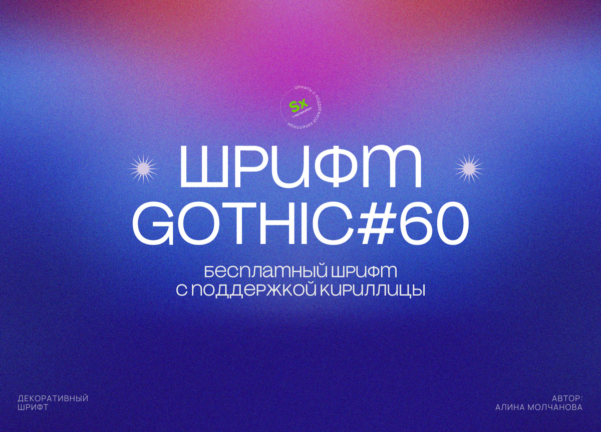 Ничего готического в нем нет, но все же. Неплохо читаемый, бесплатный шрифт с поддержкой кириллицы. Автор: Алина Молчанова Бесплатно для личного и коммерческого использования Скачать шрифт Gothic60 можно в нашем телеграм-канале с кириллицей Скачать шрифт бесплатно