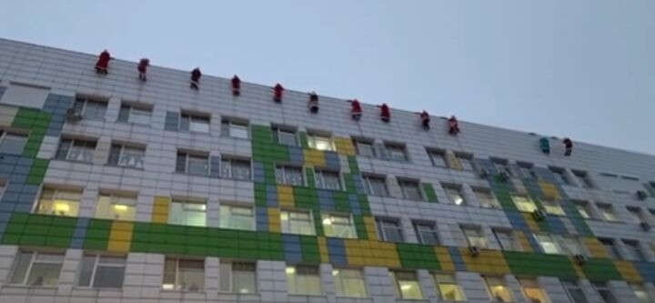 Деды Морозы с альпинистским снаряжением поздравили пациентов детской больницы с Новым годом