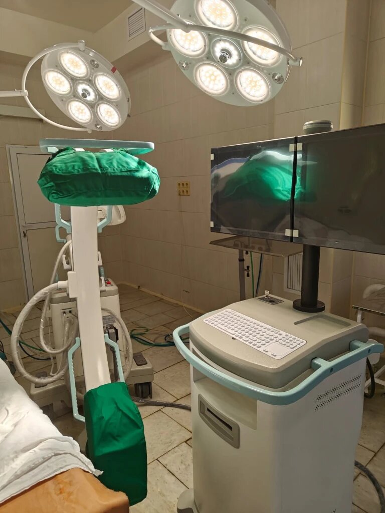 Операция прошла с применением С-дуги – новейшего рентген-аппарата, по форме напоминающего букву С. Этот прибор позволяет видеть то, что происходит внутри тела пациента непосредственно во время операции в 3D-формате. Фото из группы ЛОКБ в ВК.