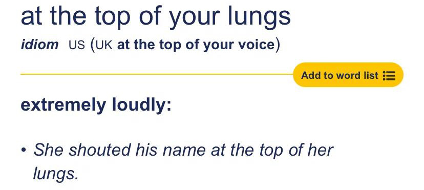 Идиома «at the top of your lungs»
