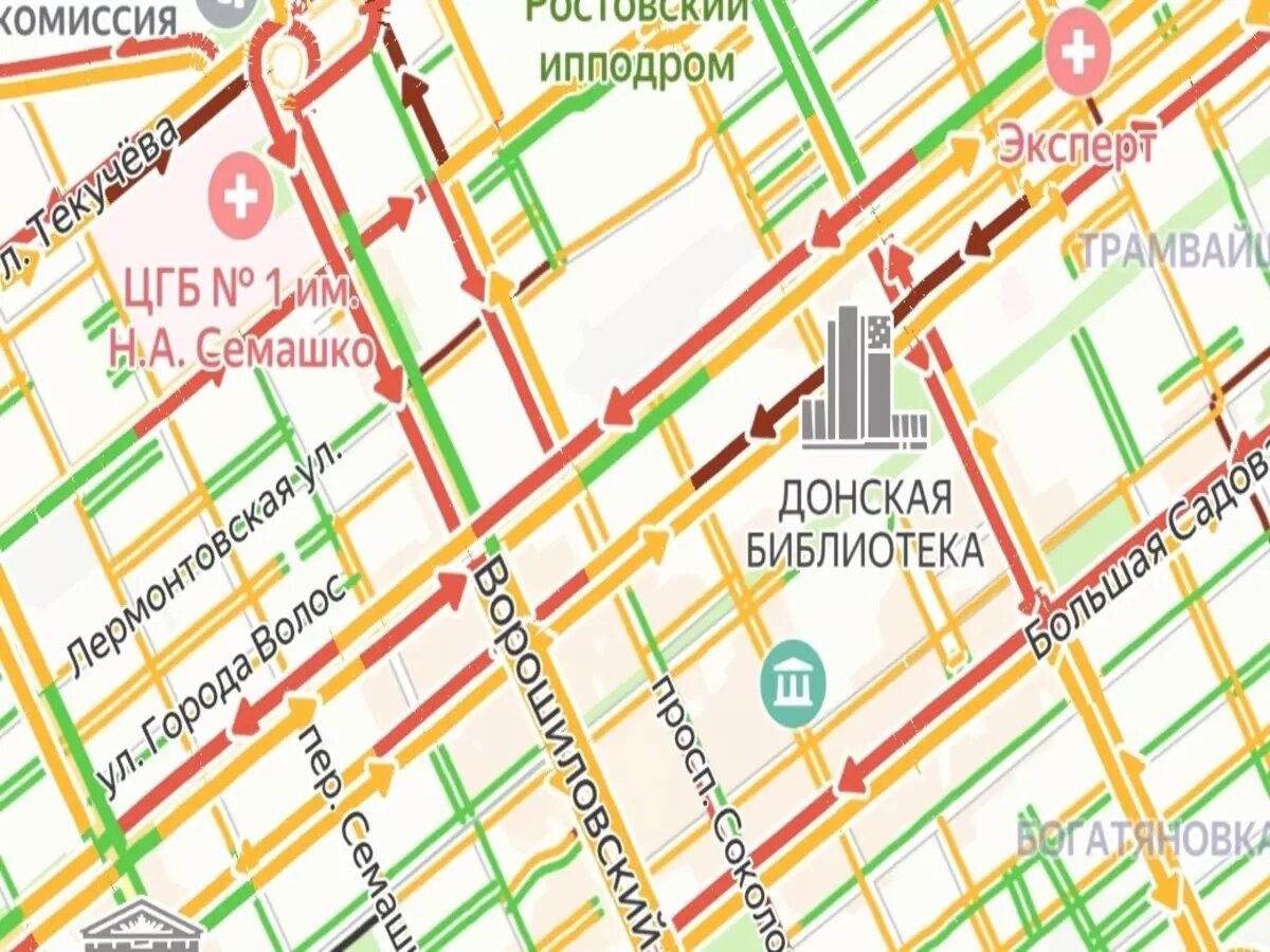 Движение машин оказалось парализовано почти на всех основных транспортных артериях столицы Дона. Сложная ситуация наблюдается на проспектах Ворошиловском, Буденновском, улице Красноармейской и Максима Горького. Также огромная пробка образовалась на улице Большая Садовая. Вероятно, что ростовчане массово решили отправится за новогодними подарками в центральные магазины города.