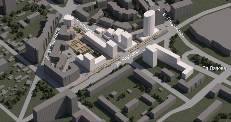 Напомним, вариант объемно-планировочного решения будущей застройки в рамках подготовки мастер-плана КРТ представили осенью 2023 года. Согласно визуализации, в районе площади Лядова предполагается строительство девяти зданий, три из которых разместятся на одном стилобате. Высотным акцентов квартала станет новостройка овальной формы, которую возведут у перекрестка улиц Крупской и Большой Покровской.