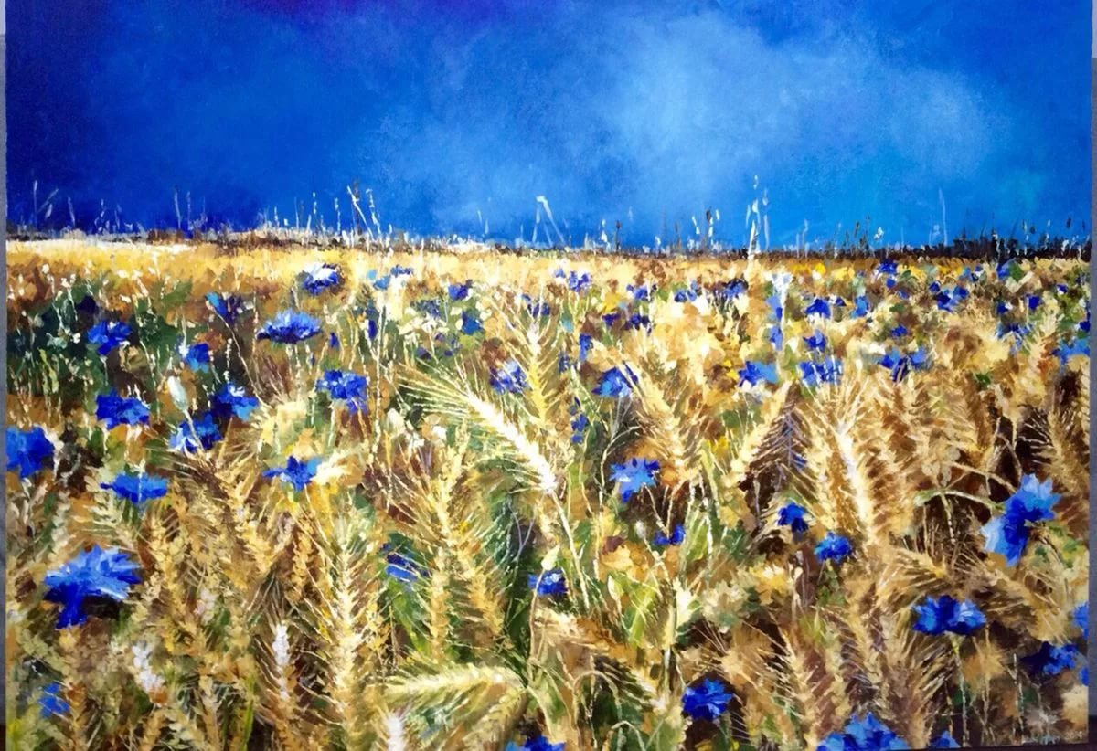 И васильки. Они росли среди пшеницы, и я собирала их в букет, расхаживая у края пшеничного поля. Вдруг меня позвал Роман, наверное, следовало в очередной раз с кем-то сфотографироваться, демонстрируя счастливую семью, и я пошла к нему, прижимая цветы к груди.