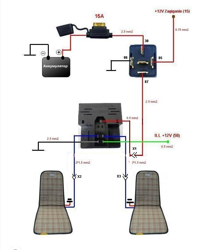 - После монтажа включить зажигание и проверить работоспособность всех режимов устройства. Обогрев сидений должен работать только при включённом зажигании.