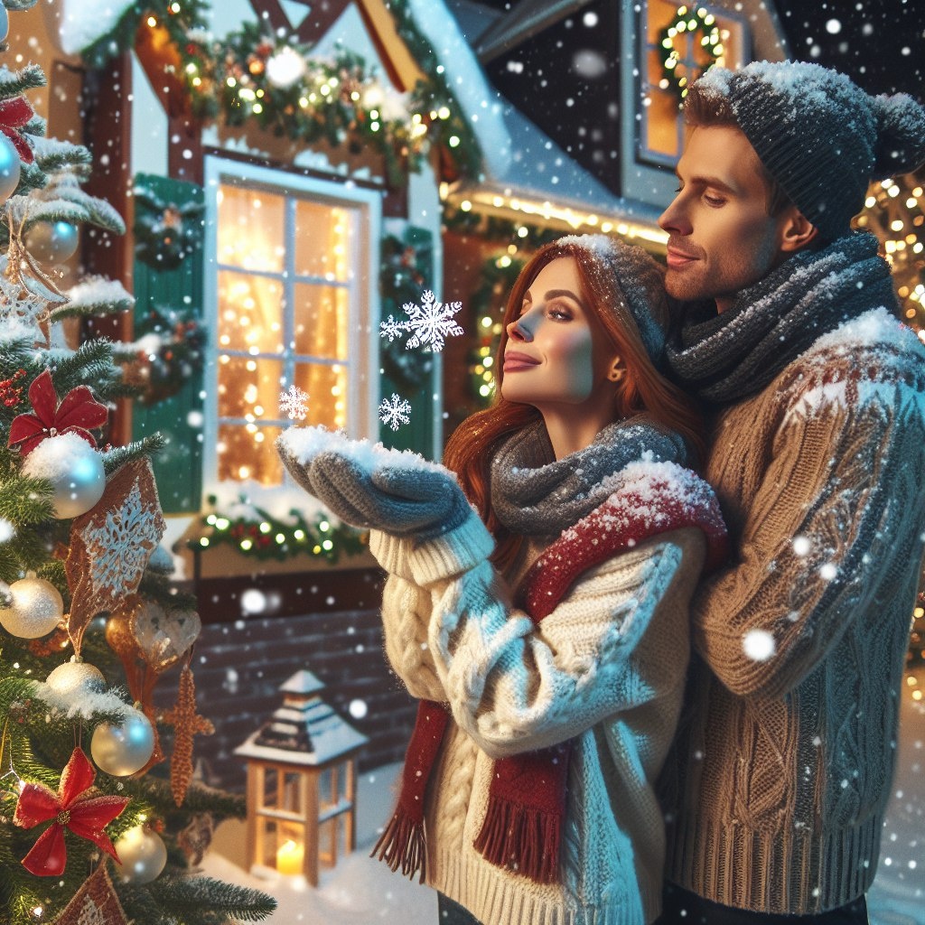 В маленьком городке накануне Нового года пошёл волшебный снег. Легкие и пушистые снежинки кружились в воздухе, не спеша ложиться на землю.