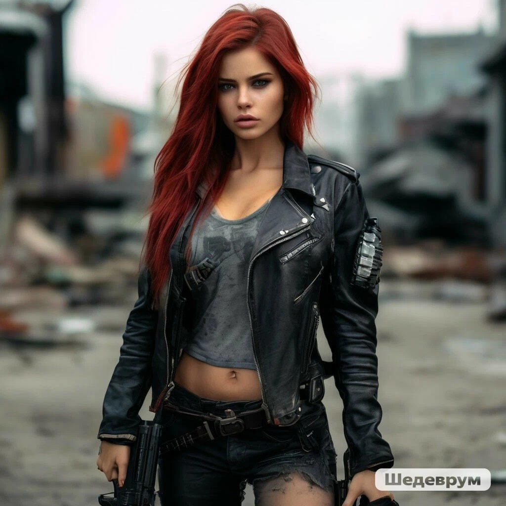 Данный результат пришёлся мне по душе, ведь тут уже было из чего выбрать. Я остановился на двух генерациях. На одной мне нравилось всё, кроме того, как выглядит грудь героини, а на другой — как раз именно этот момент. С оружием, как всегда, была проблема, и для этого пришлось лезть в интернет за картинкой автомата Калашникова с подствольным гранатомётом. А дальше… А дальше в дело вступил фотошоп, и я получил вот такой референс, который позже был отправлен в Leonardo AI с целью получения более детального изображения в лучшем качестве.