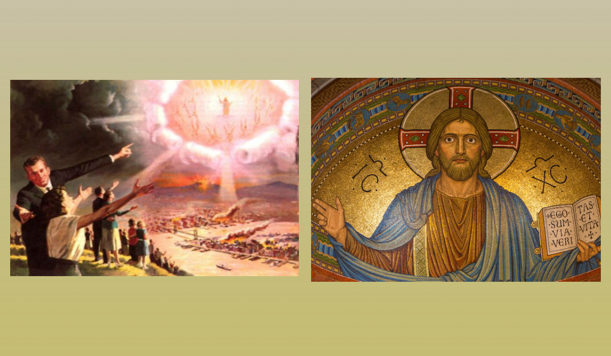 Как следует из видений апостола Иоанна, Христос со святыми спустится на землю и уже не будет наставлять людей на путь истинный, а проведет Суд, исходя из деяний и помыслов каждого. События, касающиеся Второго пришествия, называются эсхатологическими, поскольку связаны с последним днём нашего мироздания (ἐσχάτη ἡμέρα) или временами окончания бытия человеческого мира.