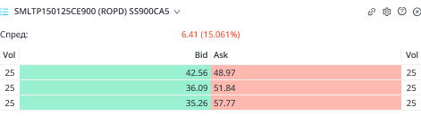 Дисклеймер: статья про премиальные опционы (ПО). В жизни опционного трейдера удача играет не меньшую роль, чем в прошлом она играла в жизни всем известного пирата… Но обо всем по порядку. Возьмём опционы на акции компании не особо раскрученные среди частников, например, на акции Самолета $Smlt. Стакан по таким опционам выглядит следующим образом: Не нужно иметь семь пядей во лбу, чтобы понять, что стакане есть только маркетос. Я ничего не имею против маркетоса в Самолете, он хороший, добрый и с ним можно работать. Но разовый вход — всего 25 контрактов, если торговать только с маркетосом, то заработать можно, но чуть-чуть. Как известно из любого правила бывают исключения. Где-то за две недели до экспирации декабрьских опционов (18/12/24) в стакане появился размер. Имхо, для меня это был подарок судьбы (или Деда Мороза — как кому угодно), на страйке 1200 (удаление 30% от текущей цены на тот момент) появляется бид по 25+ рублей за контракт (при теор цене 20!) совокупным объёмом 1500 контр