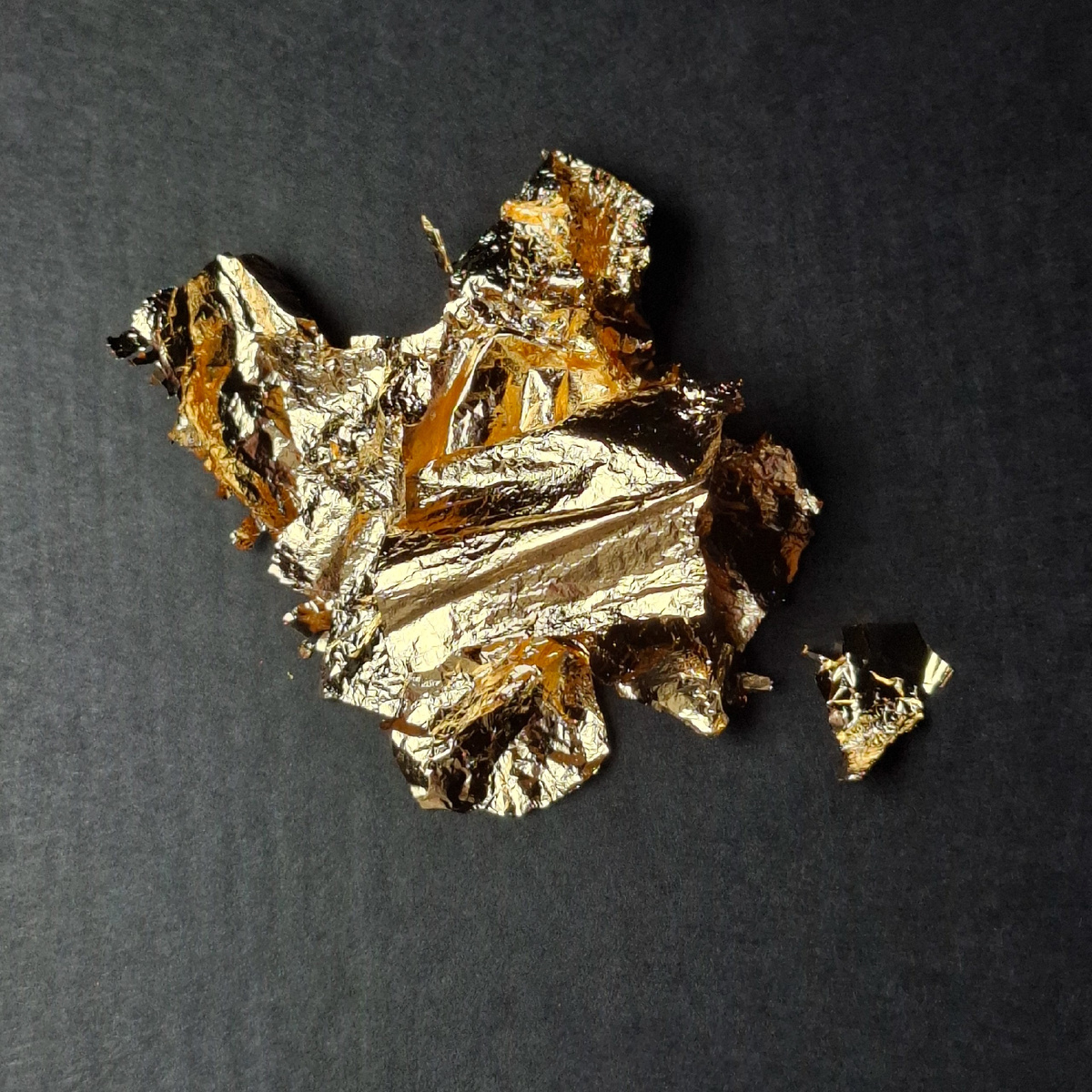 Если же ваше золото из меди - то полюбовавшись на эту красоту, ее надо потом просто удалить. И здесь надо хорошо подумать - перед тем, как что-то этим золотом посыпать - насколько реально его будет потом сковырнуть с продукта? В частности, мои хлопья очень тонкие и хрупкие, они мгновенно крошатся.
