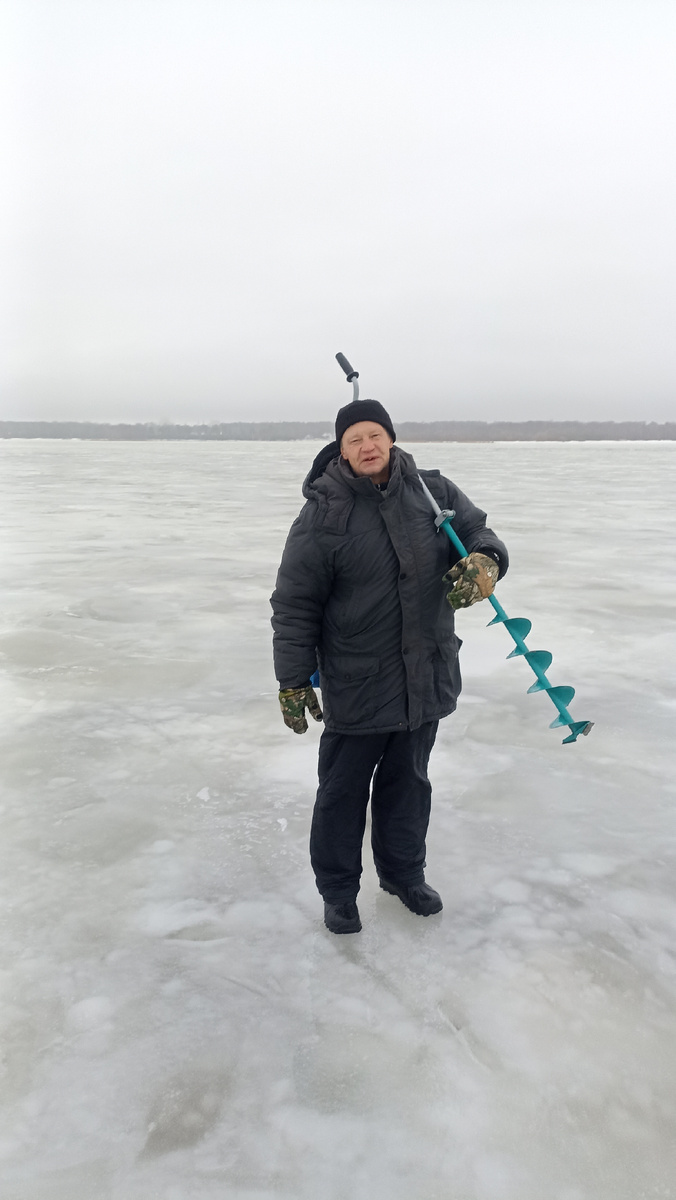 И вот уже мы сверлим первые лунки. Лед по субъективным ощущениям даже чуть утолщился, относительно воскресенья, и теперь почти везде чуть больше 20 см, примерно половина шнека ледобура. Правда по консистенции неоднородный. Спаянный из множества осколков разного размера льдин, к тому же и по толщине - нижний слой хорошего плотного "черного" льда , а над ним прослойка белого, смерзшегося из снега и воды. Но в целом лед сомнений не вызывает, по крайней мере в тех пределах, что нам сейчас интересны.