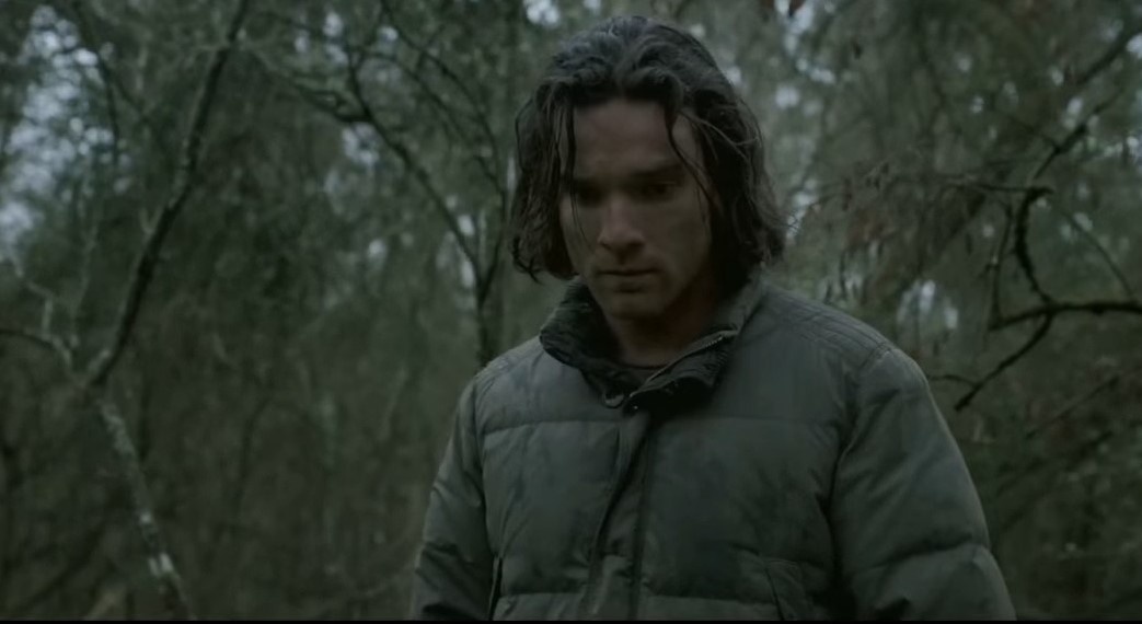 Так что его поймали и связали. Но сразу не прибили, и он умудрился дунуть в свисток. Да, я еще всё думал, что это за синяя штучка, которую он взял в той палатке. На свисток бегут псы - это теперь высшие хищники, они, кстати, как раз осаждали хижину с девушкой, пока с неизвестным результатом. Так что злодеям пришлось бежать, бросив нашего героя живого (и даже таблетки ему оставили с обувью и одеждой). Ха, спрятался за бревном - и собаки бегут мимо. Тут бы режиссеру и подумать головой - у него собаки только слушать умеют, а нюх у них куда-то делся? Да, злодеи тоже те еще выживальщики. Первым делом надо было бы покумекать как зачистить округу от псов, которые царствуют в этих лесах, как-нибудь с помощью ловушек что ли.