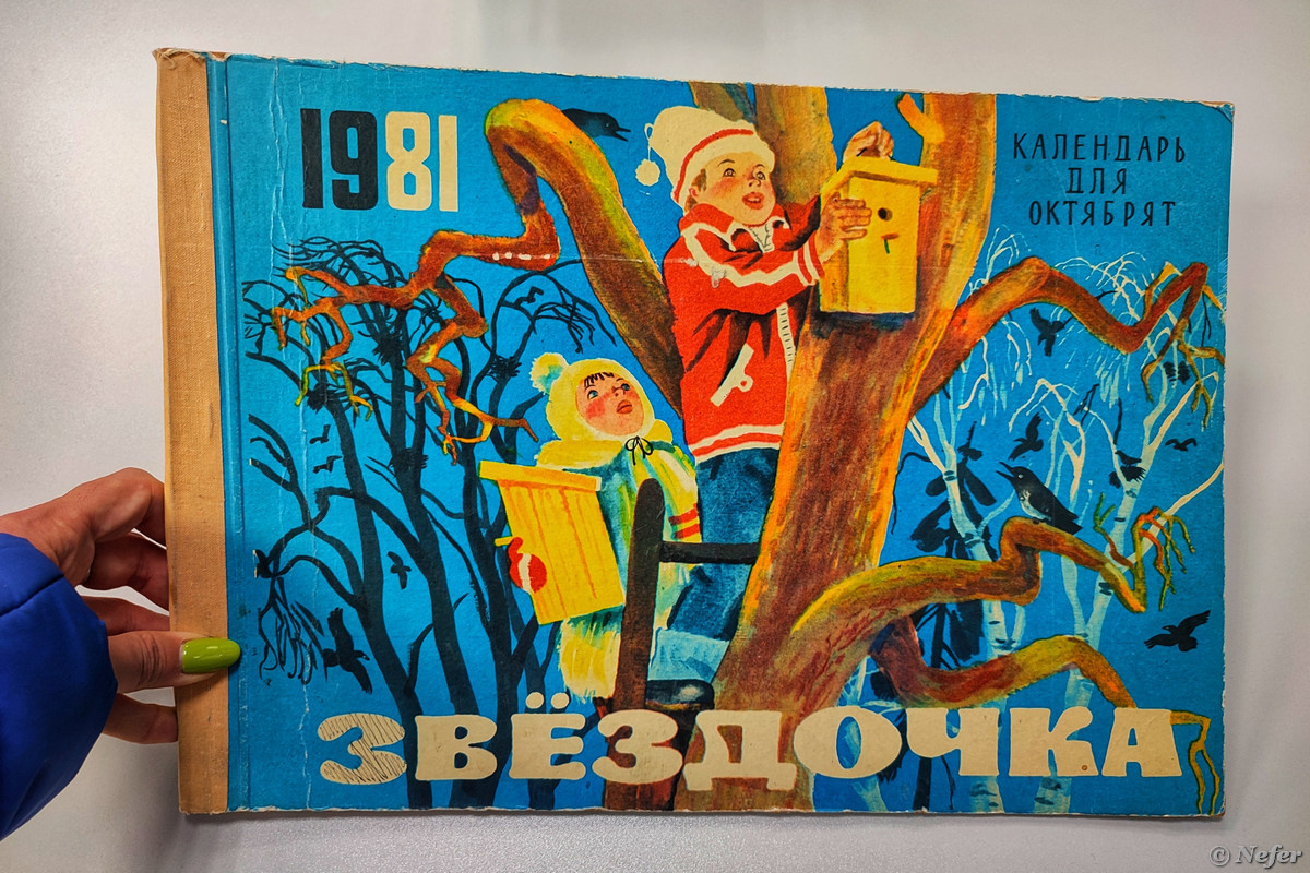 "Звездочка", наверное, знакома всем советским детям. Каждый год в декабре выходил новый выпуск. Мне нравилось рассматривать эту книжку, там были сказки, рассказы, стихи, загадки, юмористические заметки, интересные факты и развивающие игры. Все с чудесными иллюстрациями. В конце публиковался лист с поделками. Нужно было вырезать по контуру и склеить. Так что сейчас особо ценны не пострадавшие экземпляры. В интернете пишут, что календарь для октябрят "Звездочка" начал выпускаться в 1940 году. Первый выпуск вышел накануне 1941 год. Своими глазами я видела "Звездочку-1965", более давних не встречалось. В моей личной коллекции имеется несколько изданий, сегодня посмотрим календарь на 1981 год. На форзаце торжественное приветствие. Сейчас выглядит забавно, а тогда это было вполне в духе времени. Каждый выпуск посвящен какой-то теме. В этой "Звездочке" напечатан календарь природы. Как бы приглашение к путешествию в страну Двенадцати Месяцев. Смотрите, написано "Январь - месяц больших молчалив