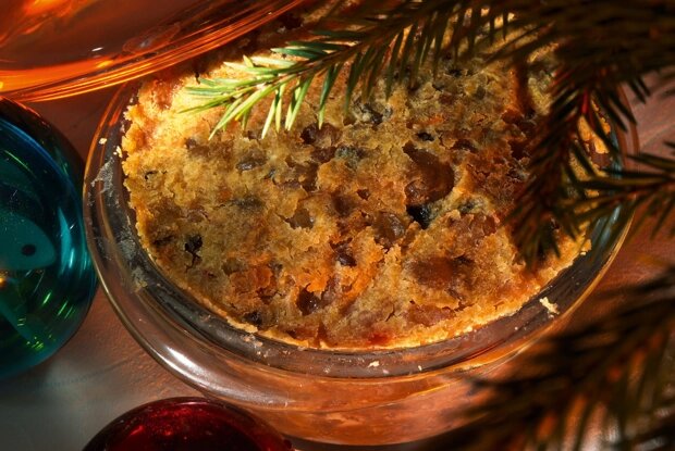 Считается, что атрибутом Рождества в своем классическом виде — как смесь из хлебных крошек, жира, сухофруктов, бренди, темного пива и специй — пудинг стал с легкой руки королевы Виктории. Но о том, как сложилась его рецептура, представления туманны. По одной из версий, первопричиной была древняя технология сохранения мяса на кораблях: мясо перекладывалось сливами, смазывалось жиром и в таком виде консервировалось. Потом мясо из рецепта ушло, сливы сменились изюмом и цукатами, но название — plum pudding — за рождественским лакомством закрепилось. Изготовление пудинга по всем правилам требует 7 часов, чтобы на водяной бане все ингредиенты стали единым целым, зато и храниться он может практически вечно. В праздник англичане пудинги не столько едят, сколько обмениваются ими в качестве подарков, а в роли упаковки выступает ткань, в которой пудинг настаивался, пропитанная всеми рождественскими ароматами.