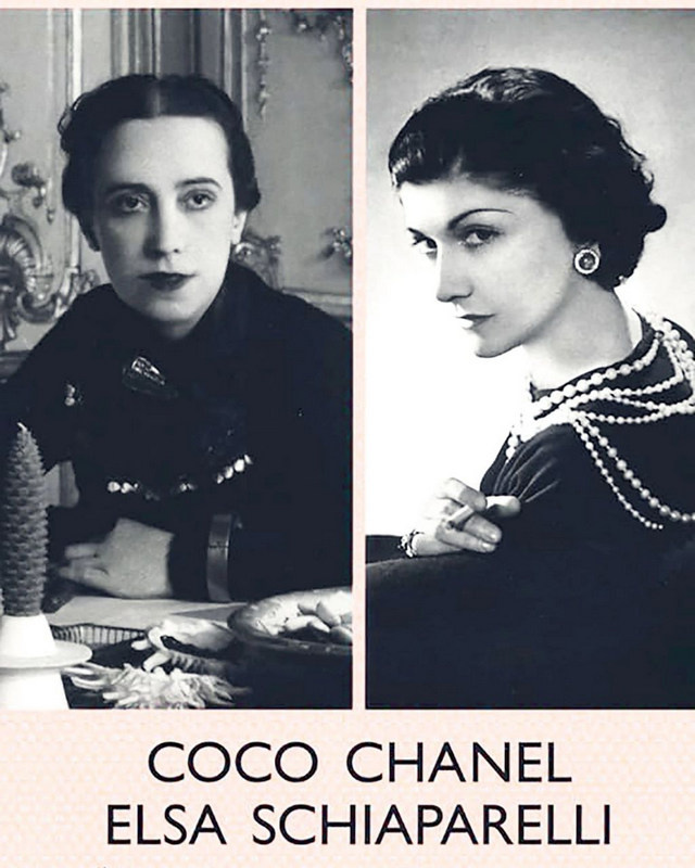 Габриэль Шанель ворвалась на модный Олимп чуть раньше своей соперницы: в 1910 году она открыла свое первое шляпное ателье в центре Парижа, а спустя два года полноценный бутик. В своих коллекциях она предлагала наряды, которые резко отличались от тех, что носили аристократки в начале века. Именно благодаря Коко в моду вошли короткие стрижки и загар. Эльза Скиапарелли, благодаря своему аристократическому происхождению и богатому семейству, имела множество полезных связей в светском Париже, среди дипломатов и бизнесменов. Ее визитной карточкой стали цвета shocking pink и сюрреализм в моде. С ее легкой руки в моду вошли дерзкие юбка-брюки и раздельный купальник. Отношения между Коко и Эльзой не были простыми. Шанель считала соперницу вульгарной, а ее работы — безвкусными. Она никогда не называла Скиапарелли по имени, обращаясь к ней как к «художнице, которая почему-то занимается одеждой». Эльза отвечала тем же и называла Коко «маленькой тоскливой буржуа». Несмотря на сложные отношения, и Ш