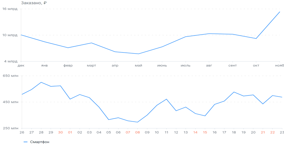 Анализ спроса на смартфоны на маркетплейсе Ozon в преддверии Нового года