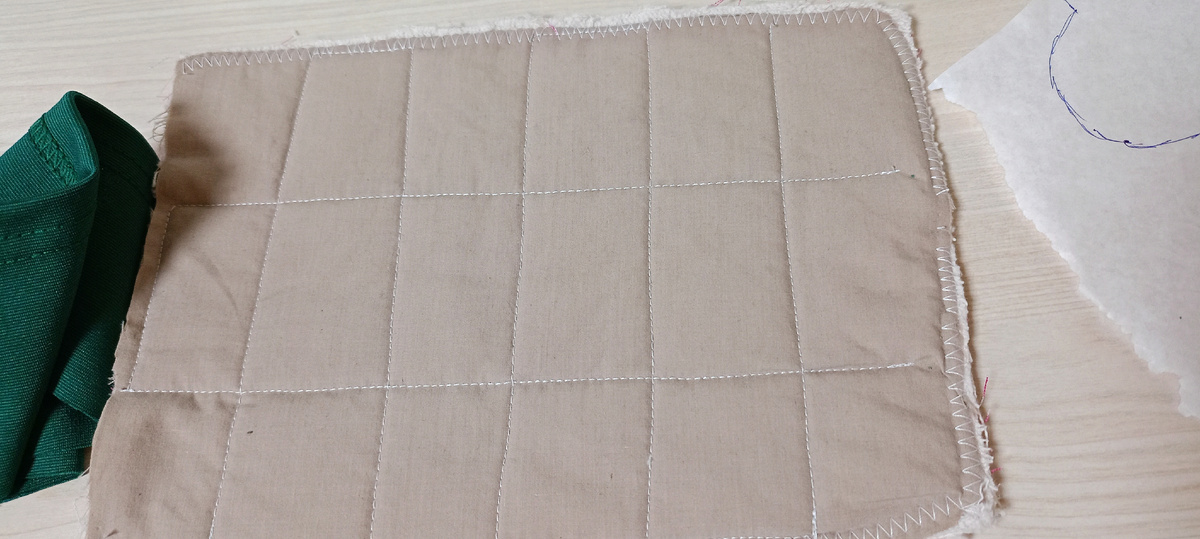 Была у меня в запасе такая заготовка- хотела сшить прихватку, но так её и не сшила). Одна сторона (она и лицевая) - однотонного бежевого цвета. Другая сторона вот такая в горошек. Пришла мыслишка сшить подставку под горячее или под кружку в технике аппликация с грузовиком, который везёт ëлочку. Нашла в интернете трафарет грузовичка и перевела на кальку. На всякий случай перевела два размера. Вырезала размер поменьше, который подошёл больше. По шаблону выкрвиваю детали. Устанавливаю на место и просто делаю стежки, чтобы не убежало ничего. Теперь вручную ëлочку простегаю зелёными нитками, а грузовика по краям прошиваю. Вид вблизи. Добавляю колёса и окошко остатками тёмной ткани. Кстати вся ткань у меня из переработанных материалов. Ëлочка- манжета от моей толстовки, сам грузовичок- моя старая юбка❤. Далее прошиваю колёса и окошко вот таким образом белыми нитками. Теперь мне захотелось добавить надпись merry Christmas. Вышила ниткой мулине зелёного- салатового цвета. И вот т