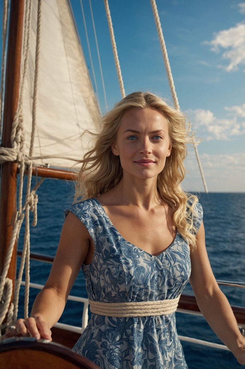 Представьте себе мир, где каждое изображение рассказывает историю. Где фотографии оживают, перенося нас в атмосферу приключений, чувств и неизведанных горизонтов. Сегодня мы хотим представить вам одну из таких фотографий, созданных благодаря современным технологиям. На снимке вы видите женщину, стоящую на борту корабля посреди бескрайнего синего океана. Её волосы свободно развеваются на ветру, а взгляд наполнен решимостью и таинственной глубиной. Её красное платье с изящными оборками подчёркивает природную элегантность и романтичность. Атмосфера снимка будто дышит морским бризом, а свет мягко подчёркивает каждую деталь, создавая ощущение, будто вы стоите рядом с ней. Но что делает это изображение по-настоящему особенным? Оно создано не на борту настоящего корабля, а благодаря передовым технологиям в дизайне и искусственном интеллекте. Современные инструменты позволяют воспроизводить сцены с потрясающим уровнем реализма, который раньше был доступен только в самых дорогих кинопостановках
