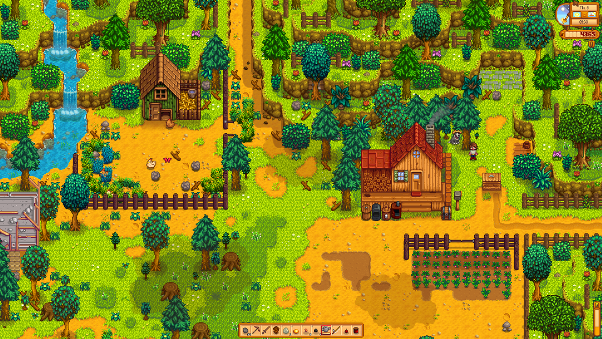 Ключевой элемент, с которого всё начинается, — это ваша ферма. Едва успев переехать из шумного офиса Joja Corporation, вы обнаружите, что домик на окраине Пеликан Таун уже зарос сорняками и завален мусором. Вероятно, ваш первый рабочий день пройдет за очисткой земель и подготовкой грядок. Казалось бы, всё очень традиционно: сажаем, поливаем, ждем урожая. Но в этой рутине кроется главное очарование игры — она умудряется превратить кропотливый труд в приятное и расслабляющее занятие.