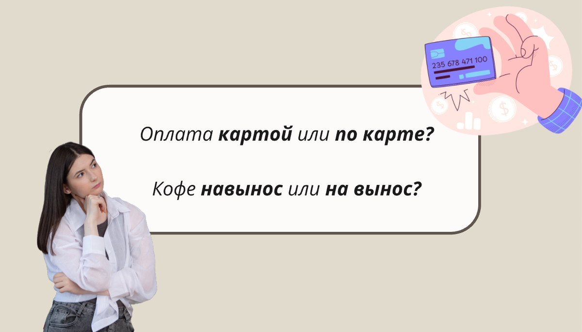 Обсудим полезные для современной жизни правила? Как все-таки правильно: кофе навынос или на вынос? Оплатить за товар или оплатить товар? Картой или по карте?