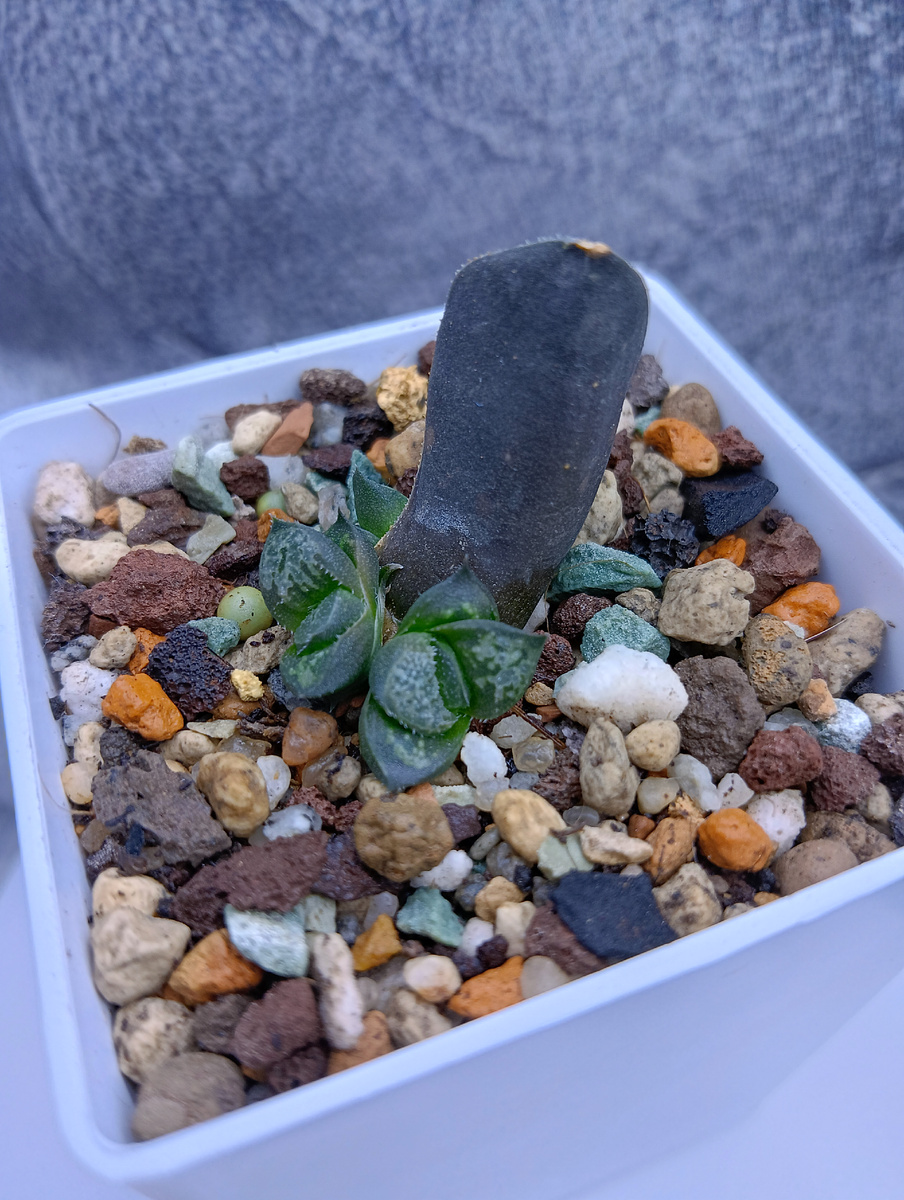 История одного листочка хавортии... Вообще, принято считать, что получить хавортию с листа очень долго и не всегда вообще можно, в отличие от эшек, например. Нужно правильно отделить лист от растения и долго ждать зародышей корешков у места отрыва. Месяца 2 этот лист просто лежал на воздухе рядом с другими суккулентами. Заметила белую шишечку корешок. Подождала ещё. Ничего не происходило. Этот корешок не увеличивался. Надоело ждать и я этот листочек подселила в один из отсеков с посевами литопсов, лапидарии и хавортии, где посвободнее, а свободное место было как раз у его братьев по виду, у сеянцев хавортии. 😁Поливался хорошо, т. к малышам нужен частый полив. Ну и через какое-то время я не смогла его достать из грунта. 😀Такие длинные у него наросли корешки. А потом на поверхности субстрата я заметила маленькую детку хаврюшу.🧐 Была очень рада! 🤩Потом появилась вторая, а потом третья! Вообщем, у меня тройня. Растем! 😍Это, кстати, Haworthia Bayeri Moonstone #haworthia #хавортия #су
