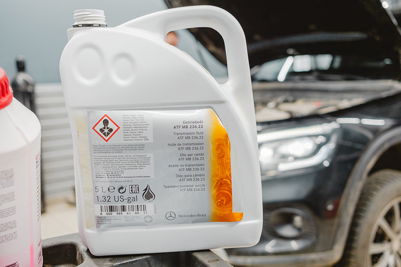 Стильные кроссоверы Mercedes GLB-класса относятся к сегменту SUV, и в большинстве случаев эксплуатируются в городских условиях. Эти автомобили оснащаются трансмиссией последнего поколения, которая призвана сделать поездку наиболее комфортной в любых условиях. Однако, агрегаты трансмиссии требуют своевременного и профессионального обслуживания. В Mercedes-Pro приехал владелец дизельного Mercedes GLB 200d 4MATIC для замены масла в автоматической коробке передач с учетом пробега автомобиля более 60 тыс. км. На автомобиле нашего клиента установлена роботизированная 8-ступенчатая КПП 724.1 последнего поколения. При обслуживании этой коробки передач мы использовали оригинальный комплект расходников Mercedes, включая масло спецификации MB 236.22 (потребовалось 6 литров), картридж-фильтры (A 2473701605, A 2473701705), фильтр маслоохладителя (A 2463772300), фильтр КПП (A 2473775601), а также заглушку поддона, переливную трубку, уплотнительные элементы и новые болты. После обязательной компьютер