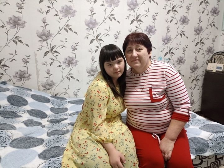 Гулия Мубаракшина живет в селе Байлянгар. Вместе с мужем Хамитом воспитала трех дочерей: Энже, Диляру и Дину. Дина - младшая дочь, у нее синдром Дауна, совсем недавно ей исполнилось 15 лет. Вот, что про нее рассказывает мама: "Младшую дочь Дину я родила в 37 лет. Учитывая мой возраст, врачи направили меня в роддом Казани. Родила путем кесарево сечения. Сразу же после рождения ребенку поставили диагноз „Синдром Дауна“. Не сломиться в тот момент, не впасть в уныние, не растеряться мне помогло надежное плечо супруга и моих детей. Хамит сказал: „Дина не больной ребенок. Мы должны принять ее такой, какая она есть“. Девочки тоже поддержали. Тогда Энже было 17 лет, она училась в 11 классе. После окончания школы она поступила в Казанский медицинский колледж. Диляре было 12 лет, она помогала мне ухаживать за Диной. В год и три месяца Дина начала ходить, почти в два года появилась речь со слов „мама“, „папа“. До 8 лет ходила в детский сад. Ни в детском саду, ни в школе нашу дочь не обижали, не