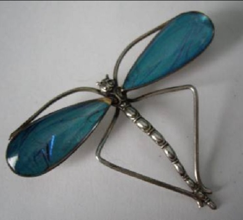 В 1920 - 1930 - е годы был популярен особый вид английских украшений. Они были сделаны из стерлингового серебра, а фоном было нежное (обычно голубое) крыло тропической бабочки Морфо (Blue Morpho).