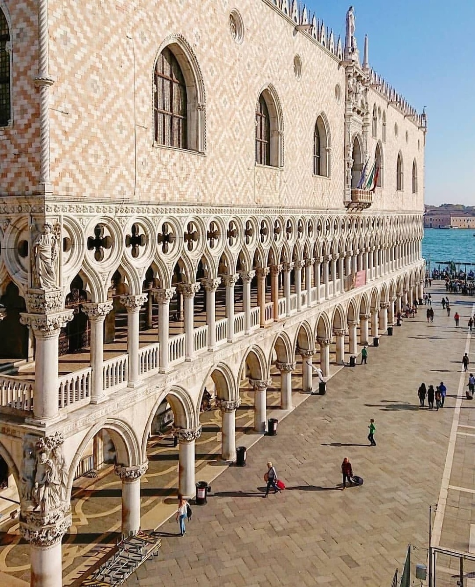 Дворец Дожей (Palazzo Ducale) — уникальное и величественное здание в Венеции, которое сочетает в себе изысканную красоту и многовековую историю. Этот дворец является настоящим наследием Венеции и представляет собой важную часть её культурной и архитектурной палитры. В статье расскажем о его истории, особенностях и интересных фактах. Дворец Дожей был построен в IX веке и служил резиденцией дожей, правителей Венеции. Он стал символом политической власти города и его уникальной государственной системы. Строительство дворца продолжалось на протяжении веков, в результате чего он вобрал в себя элементы различных архитектурных стилей, включая готику, ренессанс и барокко. Дворец был не только домом для дожей, но и важным административным центром, где принимались ключевые решения, касающиеся управления Венецианской республикой. Также в нем находился суд, а для заключенных был построен знаменитый мост вздохов, который соединял дворец с тюрьмой. Дворец Дожей — это не просто красивое архитектурное
