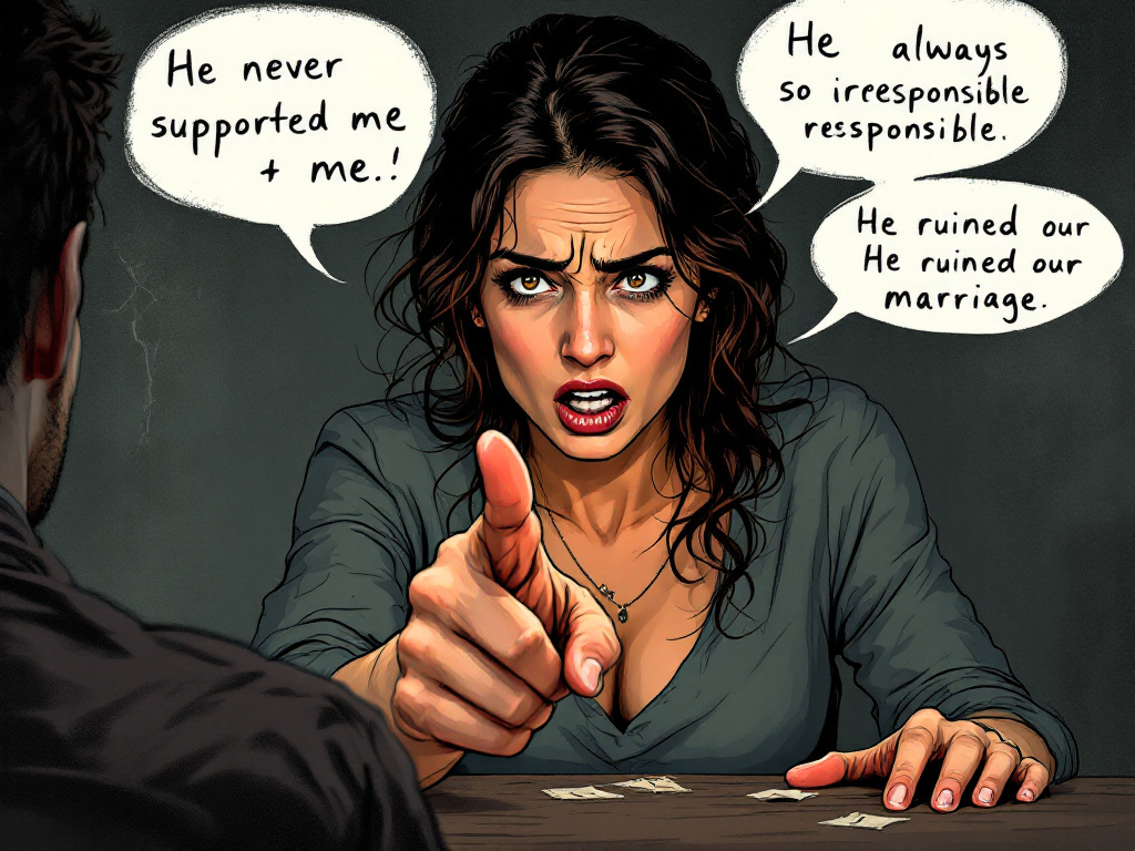 Если встретили РСП и она обвиняет бывшего мужа, постарайтесь узнать её версию событий. Задавайте конкретные вопросы о том, что именно произошло, и какие её действия могли привести к проблемам в отношениях. Но не верь всему, что она говорит, фильтруй информацию.