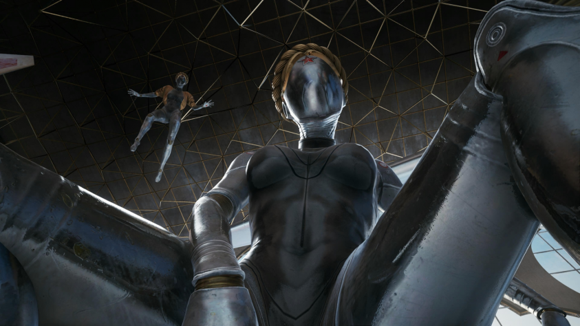 Сталинский ампир с массивными шпилями, большими арками и зданиями из гранита удивительно сочетается с летающими дронами, помогающими людям роботами и прочими достижениями советской научной мысли. Именно величие учёных, торжество интеллекта и изобретение загадочного полимера позволило СССР стать внушающим трепет, великим государством, что мы видим в самом начале игры.
