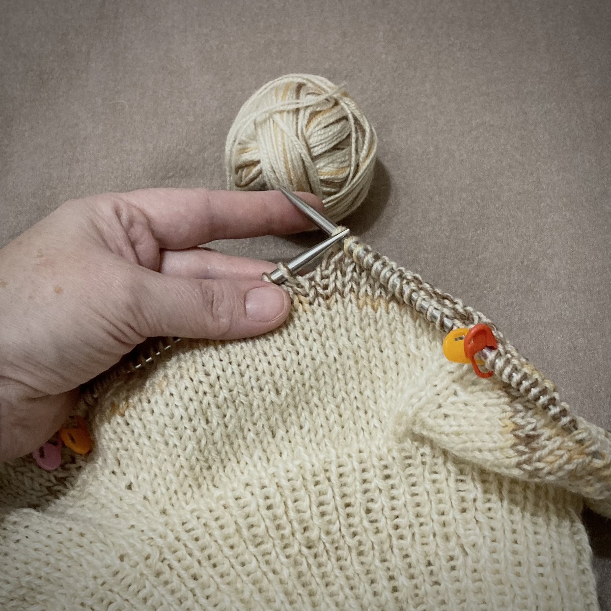 Продолжаю вязать манишку спицами в рамках СП «Шалемания».