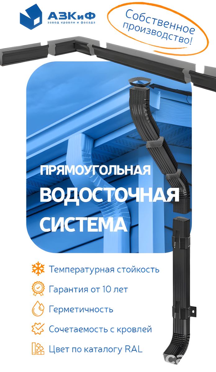 Никакая кровля не обойдется без качественной водосточной системы. Анонсируем очередную новинку - прямоугольную водосточную систему из оцинкованной стали. Чем прямоугольная система лучше? — пропускная способность больше круглых водосточных;