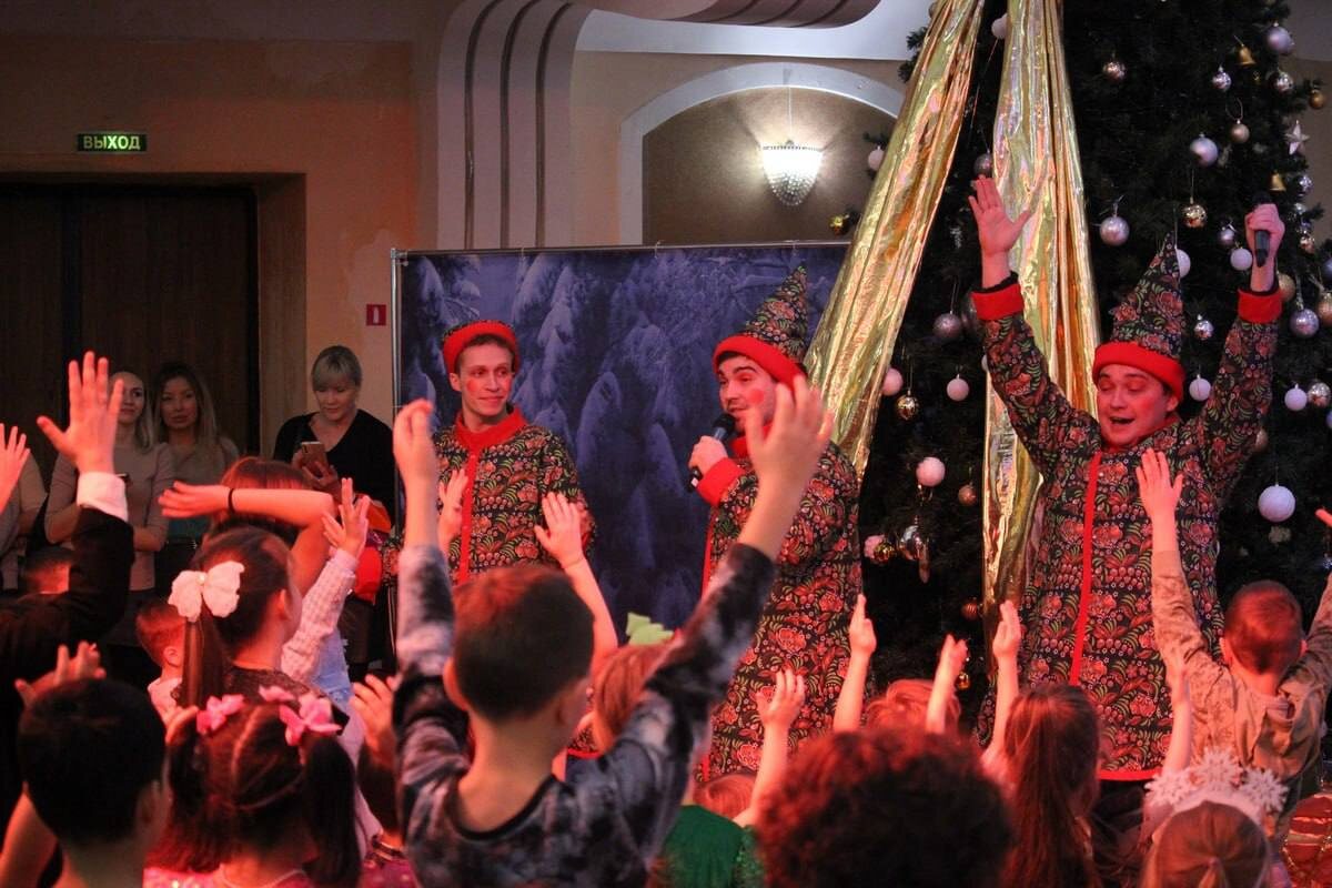 Далее участников новогоднего представления пригласили в зрительный зал. Театр для детей и молодежи «Мастерская» подготовил тематический сюрприз — спектакль «По щучьему велению». В завершение мероприятия все ребята получили наборы сладостей.
