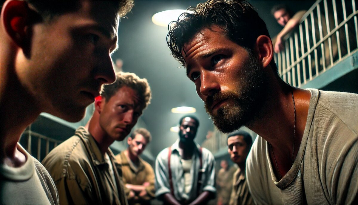 Напоминает похожую ситуацию в армии конца 90-х, где процветала дедовщина. Старослужащие, недовольные уверенным поведением крепкого новобранца, попытались его “перевоспитать”: