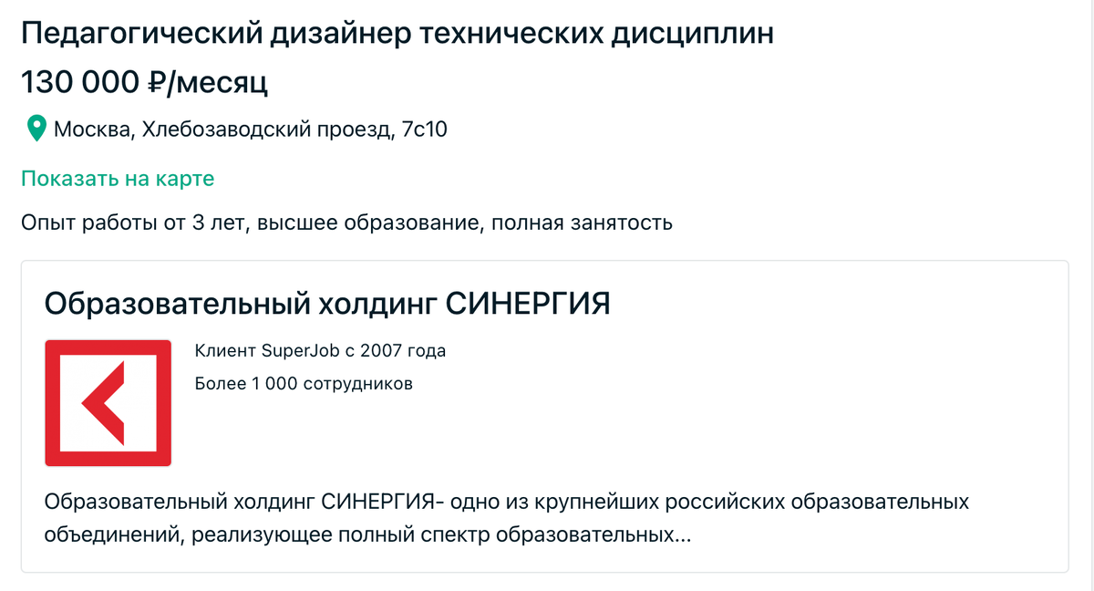 Кто понял, что подразумевает под этой вакансией работодатель должен иметь как минимум ученую степень. Кстати, так оно и есть- одно из требований к соискателю- ученая степень. А еще: знание педагогики, опыт работы в ВО и умение создавать образовательный контент. Под последним имеется ввиду вообще не только лекции и семинары, но умение делать все возможные форматы уроков для онлайн-обучения (вебинары, тесты, мастер-классы, презентации и пр.)