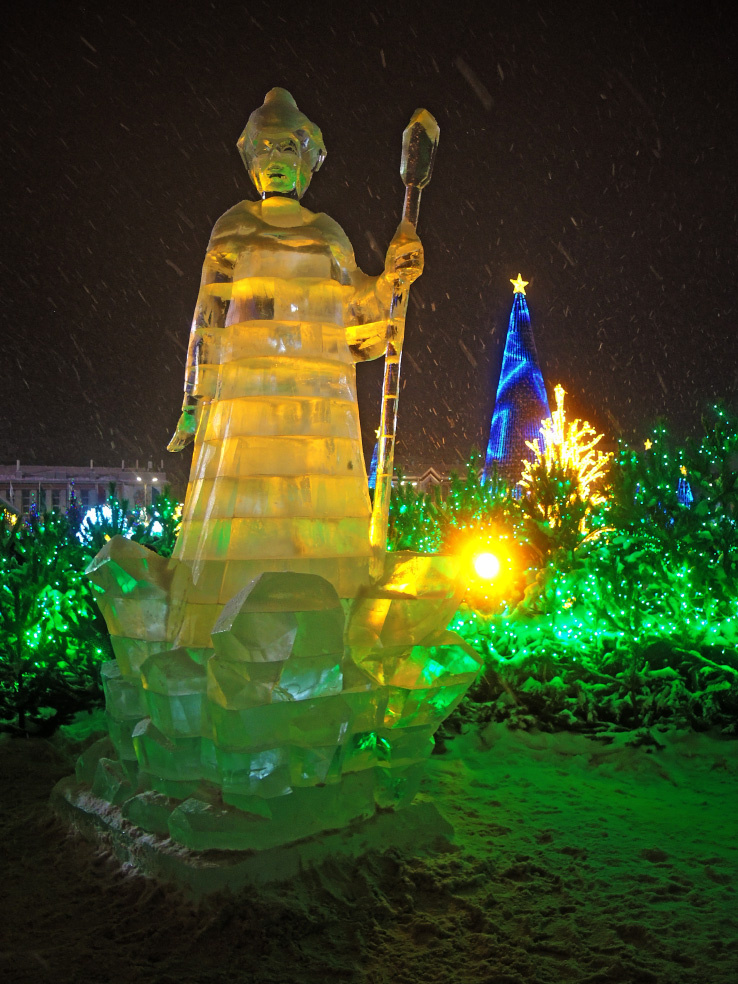 Продолжаю знакомство с праздничным оформлением площади имени Куйбышева в Самаре. В сезоне НГ2025 здесь снова были оформлены площадки с героями сказок и мультфильмов. Основная часть объектов уже знакома по предыдущим годам. Но появилось и кое-что новое. К сожалению, из-за плохой погоды поснимать подробно у меня не получилось. Но новое постарался хоть как-то захватить для истории. Персонажи мультфильма «Снежная королева». Именно по образам из советских мультфильмов были сделаны все герои и на других площадках. Из уже привычного на этой площадке - ледяные фигуры самой королевы и оленя. Ледяные фигуры в этом году очень сильно пострадали от погоды. Практически все новогодние праздники в Самаре было тепло, да ещё и периодически шли дожди. И если вечером 31 декабря скульптуры были свежими, правда, занесёнными снегом,... ... то уже 2 января начали постепенно оплывать,... ... а 4 января превратились в развалины. В каком виде они дошли до конца праздничной недели, я даже не стал пытаться посмотр