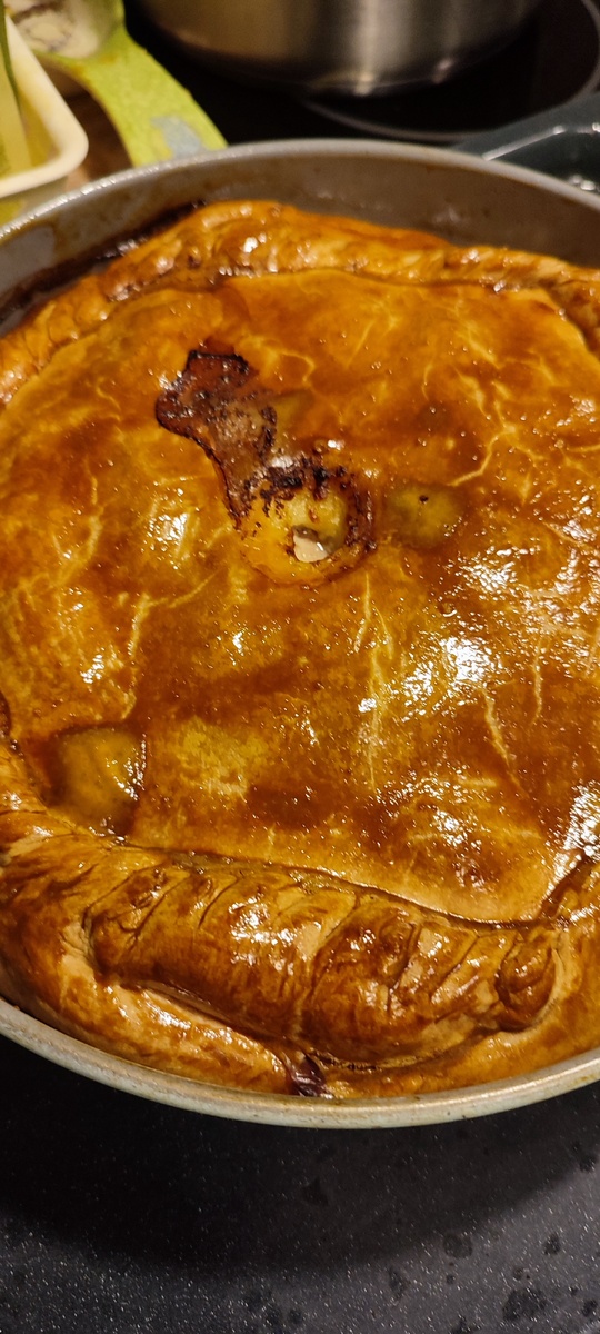 Курник (семейный рецепт) Моя бабушка делала его в печи из собственной курицы. Я конечно покупаю продукты в магазине. Рецепт теста 450 гр муки Масло сливочное 100 гр (растопить, я делаю это в микроволновке) 170 гр кефира (можно сметаны) Сразу в кефир добавить чуть чуть соды примерно 0,5 ч л Соль 0,5 ч л Я ставлю в хлебопечку на режим "пельмени", но можно замесить руками. Пока готовится тесто, почистить картошку, порезать полукольцами, лук также порезать полукольцами. Все перемешать, лук хорошо пожамкать, посолить, поперчить. Курицу, можно целую тушку порезать ( так бабушка делала), а можно филе бедра (лучше, чем грудка) порезать. Тесто разделить примерно на 1/4 и 3/4. Большую часть раскатать и поместить в форму. Положить сначала картошку с луком. Потом сверху курицу. Душистый перец горошком шт 3-4. И лаврушку. Аккуратно налить воды, примерно 100 мл. Раскатать оставшееся тесто и сделать крышку☺️ Смазать желтком. Поставить в духовку, конечно все зависит от духовки и курицы (