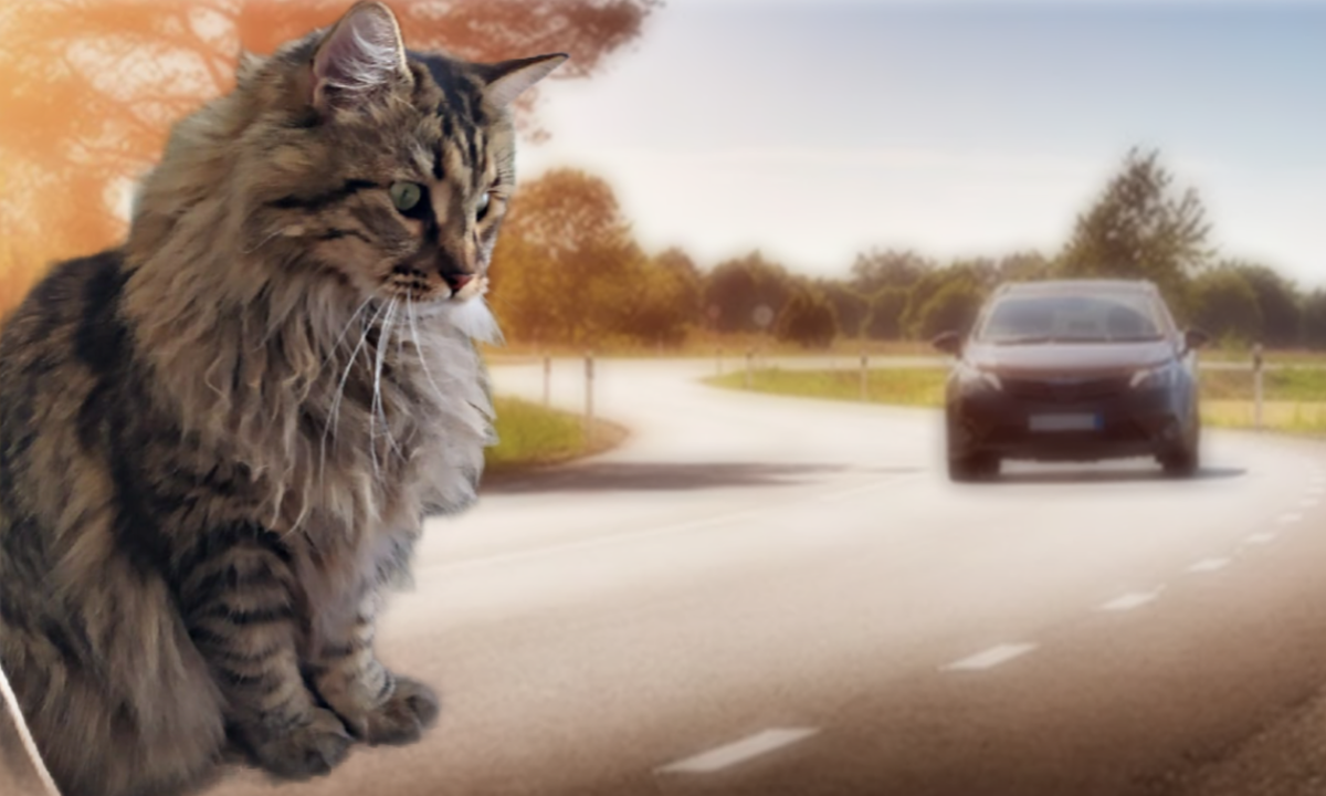 Серый полосатый кот как ни в чём не бывало сидел посреди дороги и невозмутимо умывался. В его неторопливых движениях читалось полное презрение к автомобилю и его перепуганным пассажирам. Янтарные глаза щурились, словно говоря: "Ну и что вы мне сделаете?"