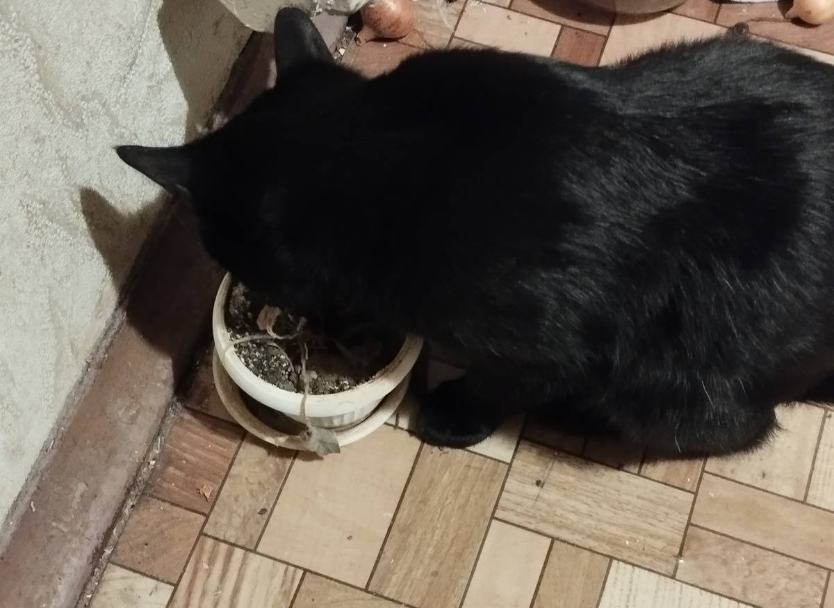 У меня высохла фиалка. Я спрятала ее от кота, чтоб не развернул, и забыла полить. Она и так была уже на грани, а тут высохла окончательно. Ну ладно, поставила я ее на пол в кухне, потом, думаю, посажу в этот горшок что-то другое. Так вот кот, всякий раз, как я пускала его на кухню, летел к этой фиалке и начинал её хавать. Я отгоняю, он подходит и хавает. Даже драцену мою погрыз. Тогда я решила купить ту самую траву для котов, которую все рекомендуют в качестве клетчатки для улучшения пищеварения, чтоб коту скучно не было. Купила, значит, пачечку семян, и решила посадить в тот самый горшок из-под фиалки. Фиалку отправила в последний путь, а землю в горшке взрыхлила, полила водой, насыпала туда этих семян, прикрыла землёй и сверху тоже попшикала водой из опрыскивателя, чтоб не размыть. Накрыла целлофаном и поставила над батареей, чтоб создался парниковый эффект, и всходы быстрее появились. Ну и ждём теперь. А что ещё интересное я нашла для кота, чтобы он не скучал, пока ждём всходы т