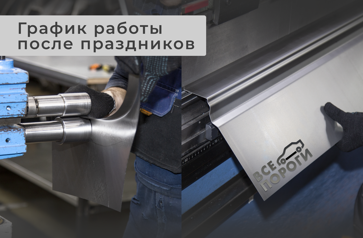 Надеемся, все хорошо отдохнули и готовы к новому году! Мы - готовы. Напоминаем график работы компании “Все Пороги”. Как быстро получить кузовные ремкомплекты на свой автомобиль? Заказать их у нас и забрать любым удобным способом. Мы всегда готовы подсказать необходимую толщину и материал элементов, подобрать комплектующие и ответить на вопросы. Заказать у нас детали - дело нескольких минут. Чтобы обратиться в отдел продаж напрямую, звоните по телефону 8 (800) 200-21-59. Отдел продаж работает: ежедневно с 09:00 до 21:00. Если вам проще оставить заявку на сайте, можете сделать это в любое время. Мы перезвоним вам с 09:00 до 21:00 для подтверждения заказа, и детали отправятся в производство! Оформить заказ в личных сообщениях ВКонтакте можно в том же временном интервале. Мы отправляем заказы по всей России любыми транспортными компаниями. Время изготовления деталей - 1 день. Доставка в среднем занимает 4-5 дней. Выбирайте пункт выдачи заказов рядом с домом и получайте детали там, где Вам