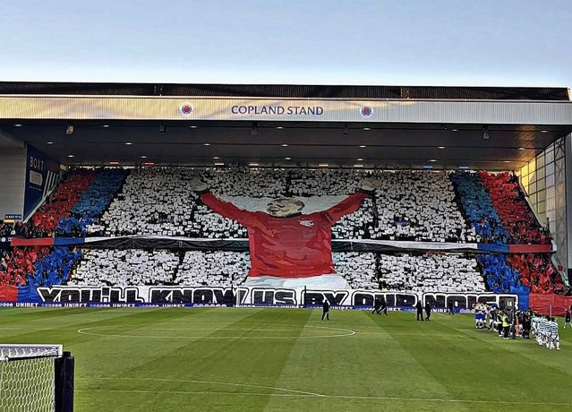 Также любопытен и лозунг «Вы узнаете нас по нашему шуму», который фэны «Рейнджерс» изобразили на своем перфомансе. Все дело в том, что это строчка из песни 1920-х годов под названием «Billy Boys», которая стала фирменной для одноименной криминальной банды Глазго тех лет, главой которой был Билли Фуллертон. Группировка «Billy Boys» появилась и в пятом сезоне популярнейшего сериала «Острые козырьки» (подробно об этом сериале я рассказывал в одном из прошлых обзоров, когда речь зашла про перфоманс ультрас «Депортиво» на эту же тематику), а сам Фуллертон утверждал, что его ненависть к католикам появилась после того, как на него напала банда ирландских иммигрантов из-за того, что он хорошо сыграл в футбольном матче против их команды. Уже после создания собственной банды он постоянно позволял себе оскорблять католиков и всячески нагнетал ненависть по отношению к ним.