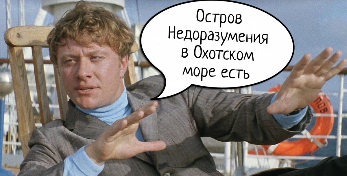 Во всем известном фильме был выдуманный остров Невезения, где крокодил не ловится, не растёт кокос и так далее. А вот в России есть настоящий невыдуманный остров, который называется островом Недоразумения. Так и слышу как Андрей Миронов поёт: "остров Недоразумения в Охотском море есть"! Находится он вот тут, рядом с Магаданом, совсем недалеко от материка. Если увеличить масштаб, этот островок фактически сольётся с Магаданом, различить его будет уже невозможно. А всё потому, что площадь этого островка каких-то 4,5 км². Для понимания площадь территории внутри Бульварного кольца около 6,4 км². В ясную погоду этот остров легко виден из Магадана, расстояние между ними всего 20 км. А от острова до ближайшего материкового берега меньше 2,5 км. В советское время на этом острове располагался рыбацкий посёлок Рыбачий и рыбзавод "Островной". Место было очень удачным в плане расположения и перехвата рыболовных сейнеров, идущих с уловом из Охотского моря. В 60-ых годах прошлого века работа здесь к