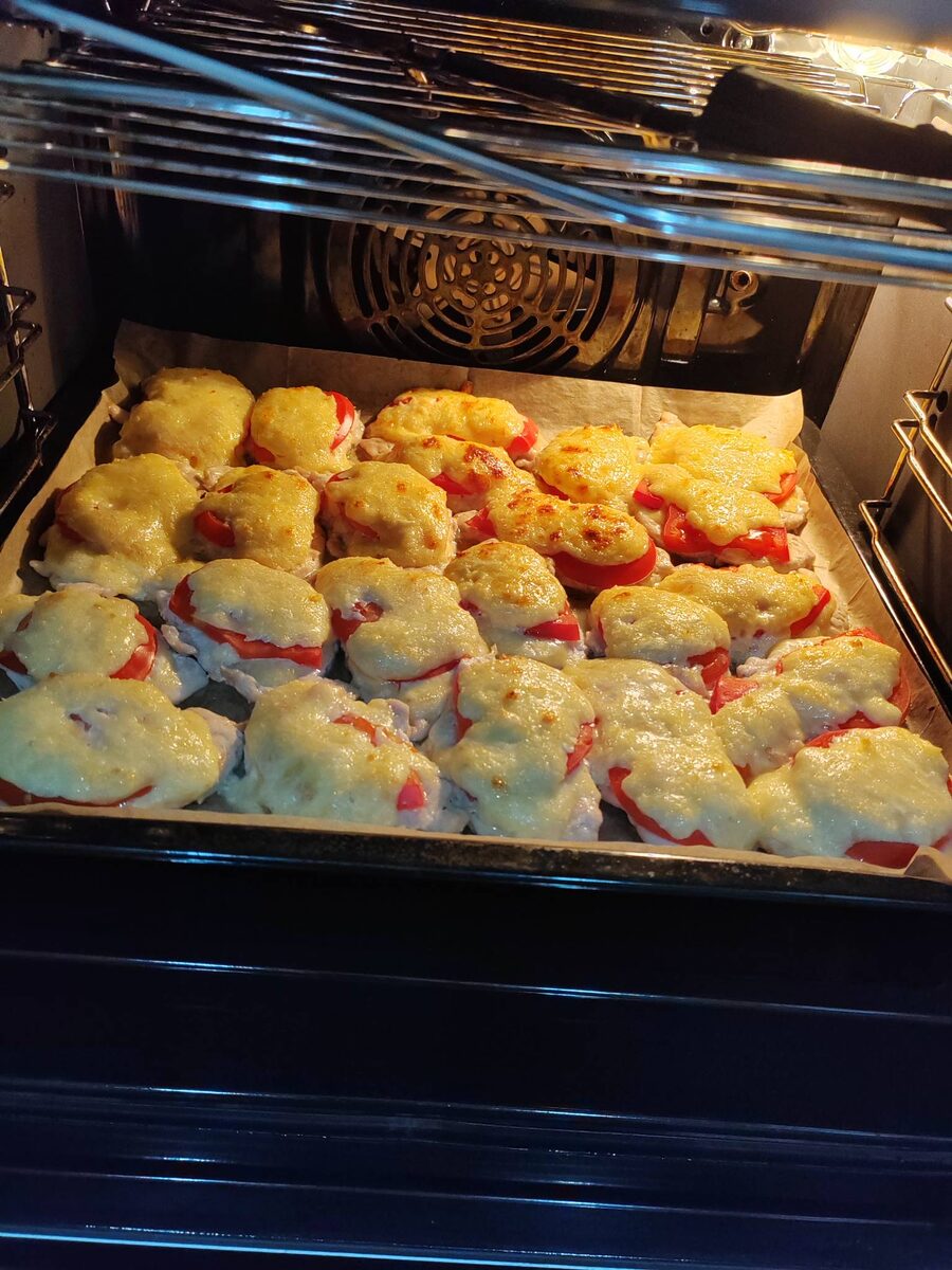 Свинина или куриное филе с помидорами под сырной шапочкой