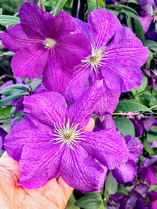 В старой части сада цветы"Виктории" всегда с преобладанием синих переливов, хотя лиана находится целый день на солнце. Возможно,и состав почвы тоже вносит свою лепту в изменение оттенка соцветий .