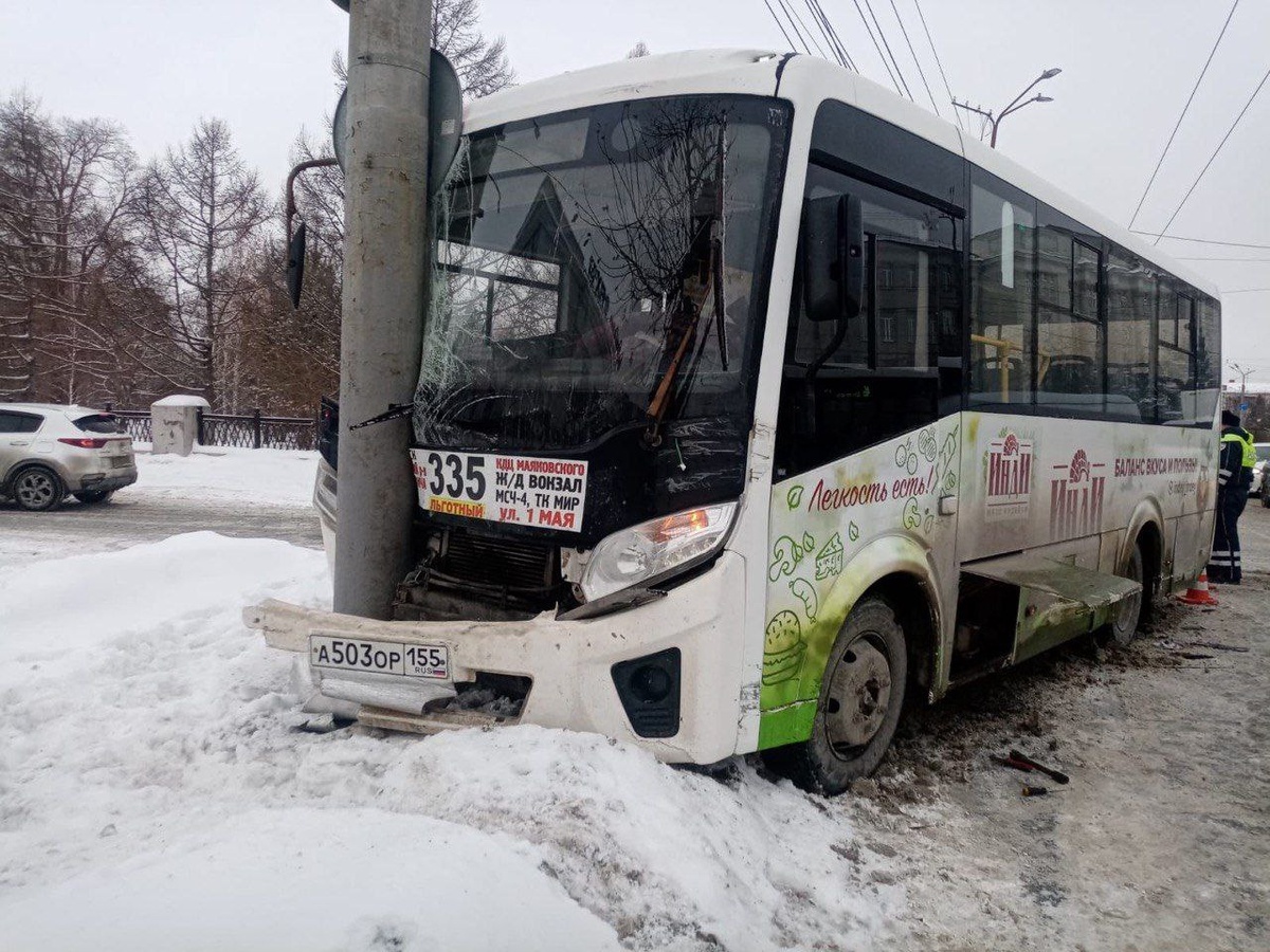 В Омске пассажирский автобус врезался в фонарный столб — есть пострадавшие