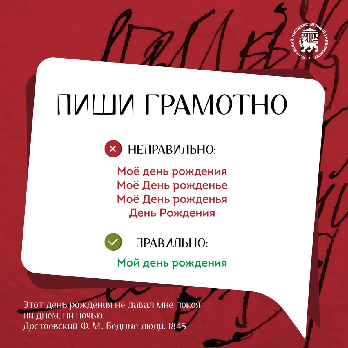 Наверное, каждый хотя бы раз допускал ошибку в этом словосочетании. Вот что важно запомнить: ✏️«День» - существительное мужского рода, именно поэтому зависимые от него прилагательные и местоимения будут отвечать на вопрос «чей?», а не «чье?». ✏️Второе существительное должно отвечать на вопрос «чего»? День чего? - День рождения. ✏️Словосочетание «день рождения» пишется строчными буквами. Всегда. Исключением могут стать лишь случаи, когда празднование вынесено на государственный уровень. А значит, мы поздравляем близких и знакомых «С днём рождения!».
