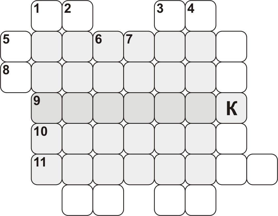 ПО ГОРИЗОНТАЛИ: 5. Выращ. хлеб. 8. Математич. кривая. 9. ???. 10. Вид судоходства. 11. Самая большая змея. ПО ВЕРТИКАЛИ: 1. Кирпичные ряды. 2. 'Хранитель посуды'. 3. Треугольник фасада. 4. Книга большого формата. 6. Дерево африканских саванн. 7. Сбор податей. ОТВЕТЫ: ПО ГОРИЗОНТАЛИ: 5. Хлебороб. 8. Парабола. 9. Дворник. 10. Каботаж. 11. Анаконда. ПО ВЕРТИКАЛИ: 1. Кладка. 2. Сервант. 3. Фронтон. 4. Фолиант. 6. Баобаб. 7. Оброк. Контрольное слово: ДВОРНИК