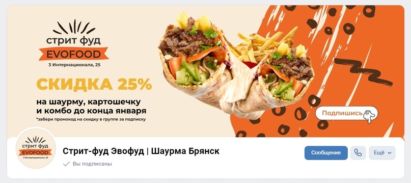 Таргет ВК - 204 лида по 49 рублей для стрит-фуда EVOFOOD из Брянска