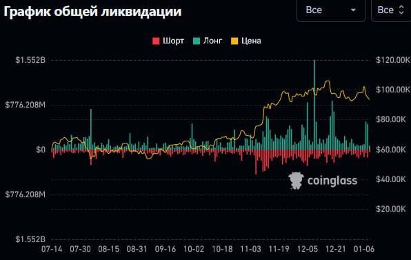 ☠️ За два дня ликвидировано лонгов на $1.1 млрд.